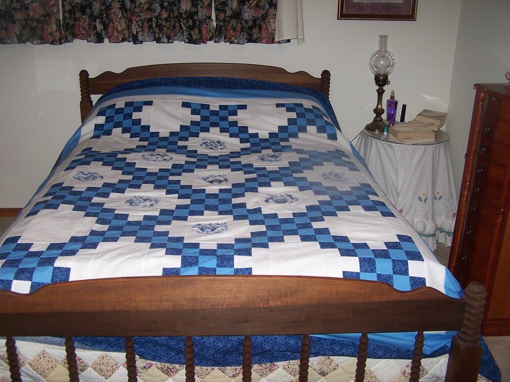 - Attach binding to the front of the quilt by machine, turn to the back and stitch down by hand: $0.25 per linear inch